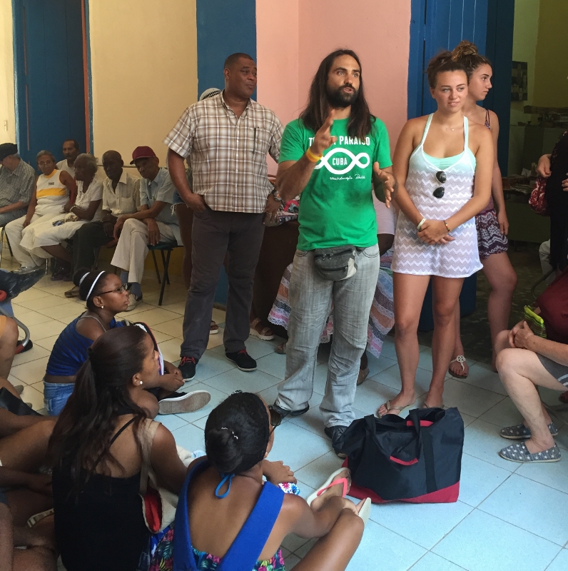 Our friends of volleyball scheduling, Pavel Valdes and his wife, Sandra Iglesias, of the Proyecto Sociocultural Comunitario BarrioHabana, are as generous with their time and talents with the older citizens as they are with the teens. Wrinkled, worn, tired faces literally lit up when Pavel walked in the door, himself with a broad grin and the announcement he was bringing guests from America. We were also accompanied by a dozen or so of the volleyball teens, all of whom apparently visit the care center quite often.