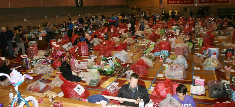 200 volunteers, 100 of them dressed as Santa or an elf, gathered at the former Holy Family School in Hazlet  last night for the 14th annual RAINE Foundation Holiday Gift distribution.