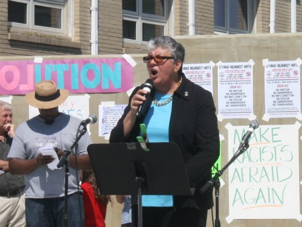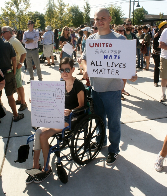 Alaimo best represented the organizers’ desire to keep the event non-partisan. “Standing against hatred, standing against bigotry, has no party lines, it’s not a Democrat or Republican stance. It’s an American stance,” she said. Bravo Jess!