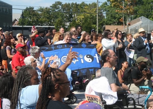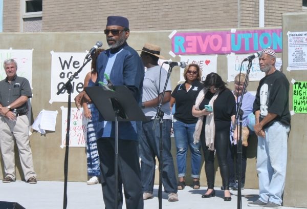 As for the speakers who followed Awad-Yassim’s readings from the Koran, the religious leaders struck the best chord, from my point of view. They called for loving all people and sharing the love. Their message was, for the most part, more pro-love than anti-hate. Rev. Vanzant, the master of ceremonies, kept bringing the message back to love and stayed on track until he was asked the introduce the wife of a political candidate who was a late arrival. He got her name wrong and obliged the partisan who asked him to announce the correct name. Nobody seemed to care.