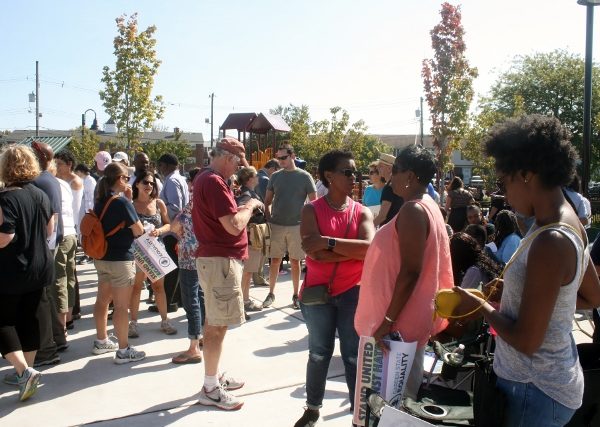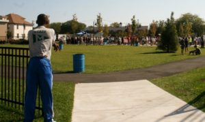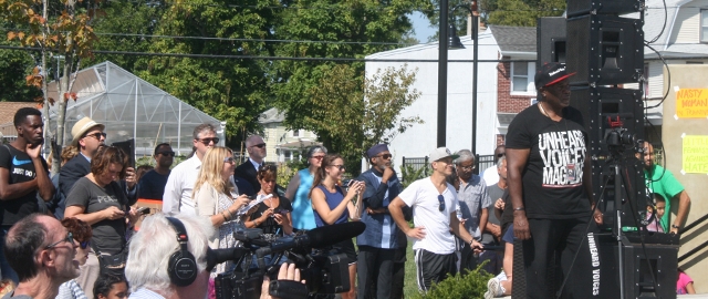 Prior to the start of the prayers and speeches, I was greeted warmly. First by a lone African American man leaning on the fence and looking into the gathering at the Springwood Avenue Park. I asked him about the shirt he was wearing that had a M logo and STAFF on the back. He explained that the shirt was for his job and had nothing to do with the event. We chatted briefly, maintaining eye contact throughout our conversation and we wished each other a nice day. This was the most welcome I’d ever felt on the west side of Asbury Park. Not that I ever felt unwelcome. Most of the other times I’ve spent on the west side of the city, I felt that I was viewed warily by some and as a potential mark by others.