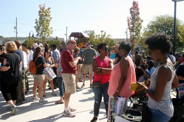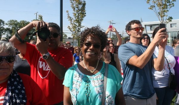 As for the speakers who followed Awad-Yassim’s readings from the Koran, the religious leaders struck the best chord, from my point of view. They called for loving all people and sharing the love. Their message was, for the most part, more pro-love than anti-hate. Rev. Vanzant, the master of ceremonies, kept bringing the message back to love and stayed on track until he was asked the introduce the wife of a political candidate who was a late arrival. He got her name wrong and obliged the partisan who asked him to announce the correct name. Nobody seemed to care.