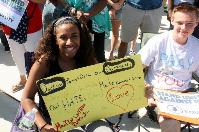 Alaimo best represented the organizers’ desire to keep the event non-partisan. “Standing against hatred, standing against bigotry, has no party lines, it’s not a Democrat or Republican stance. It’s an American stance,” she said. Bravo Jess!