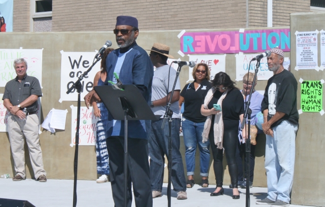 Fulton ended her angry rant with a chant. “When they come for my trans sister. NOT ON MY WATCH! When they come for the homeless black man. NOT ON MY WATCH!” She went on reciting “When the come for..” a litany of minorities and pointing the microphone into the crowd to implore them to chant back “NOT ON MY WATCH!”