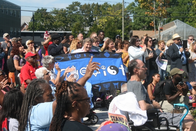 Of the secular speakers, Jewish comedian Jess Alaimo, one of the organizers of the event, hit it out of the park when she came to the microphone with Hazin Yassim, Middletown, of the American Muslim Action Network and said, “A Jew and a Muslim walk into a rally is the start of a really terrible joke. Yet it is also something that is completely unprecedented in certain parts of the world. But here we are in Asbury Park, New Jersey, all of us together standing against hate.”