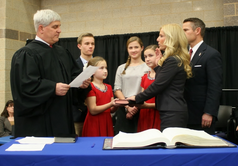 Monmouth County Clerk Christine Giodano Hanlon was sworn into her own full five year term as Clerk by Judge Joseph W. Oxley. Hanlon was nominated by Governor Chris Christine and unanimously confirmed by the State Senate to replace former Clerk M. Claire French upon her retirement last year. She was elected to her own term last November.