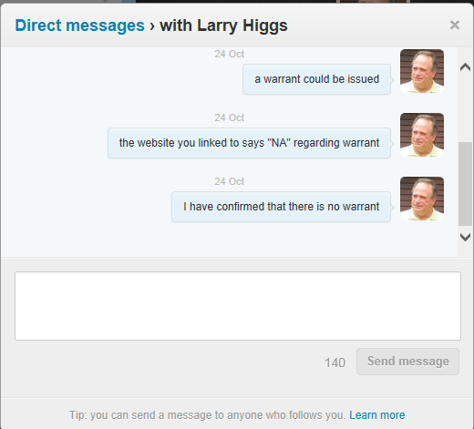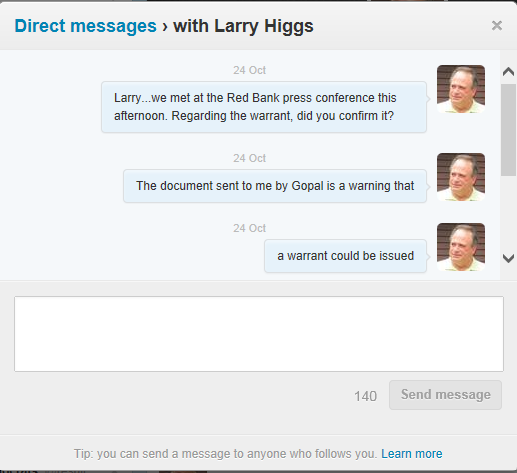 Here are links to screenshots of the DM’s I sent you Thursday night, Larry: http://www.artgallagher.com/mmmarchive/wp-content/uploads/2013/10/dm1lhiggs102413.png http://www.artgallagher.com/mmmarchive/wp-content/uploads/2013/10/dm1lhiggs2102413.png