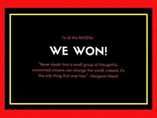 ” RAGE, you have so much of which to be proud! It just goes to show what knowing the issues, banding together and making our collective voices heard can do, said Monmouth County Freeholder Gerry Scharfenberger, the former Mayor of Middletown. “Thank you to all who put in their time, effort and money to fight for the communities we all love so much. While Monmouth County has a rich history and great physical beauty, far and away its strength is in its people. Thank you to all who stepped up!