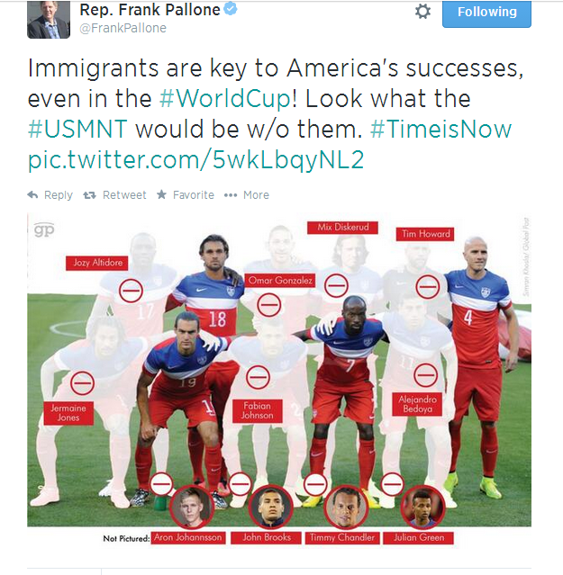 Posted: June 18th, 2014 | Author: Art Gallagher | Filed under: 2014 Congressional Races, 2014 Elections, Amnesty, Frank Pallone, Immigration | Tags: Amnesty, Congressman Frank Pallone, Frank Pallone, Immigration, Pallone duplicitous playbook, Soccer, World Cup | 8 Comments »