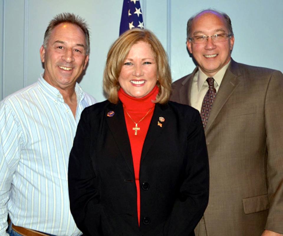 Michael Sachs, Sue Kiley and Scott Aagre celelbrate Kiley’s first election to the Hazlet Township Committee in 2014