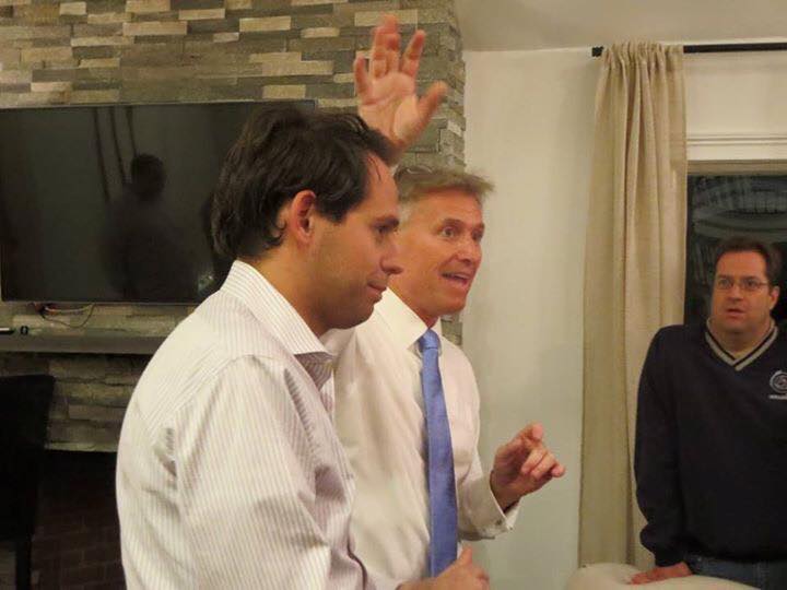 Presumed Oceanport Mayor-elect Jay Coffey, center,addresses supporters as Culllin Wible , left, and Councilman Joe Irace,right look on. photo via facebook