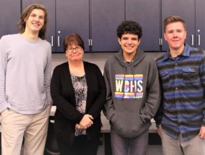 Colin Martin, teacher Laura Gesin, Jack Hester and Michael Cielecki of Communications High (missing is Vaughn Battista).