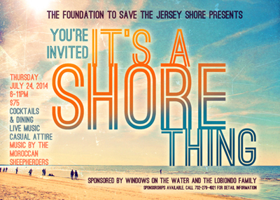 The Foundation to Save the Jersey Shore is hosting a “high-spirited, beach-casual” fundraiser at Windows on the Water, Thursday July 24 at 6 PM. Tickets are only $75, almost all of which will go directly to families and individuals who are still displaced after Hurricane Sandy. The food, alcohol and entertainment have all been donated.