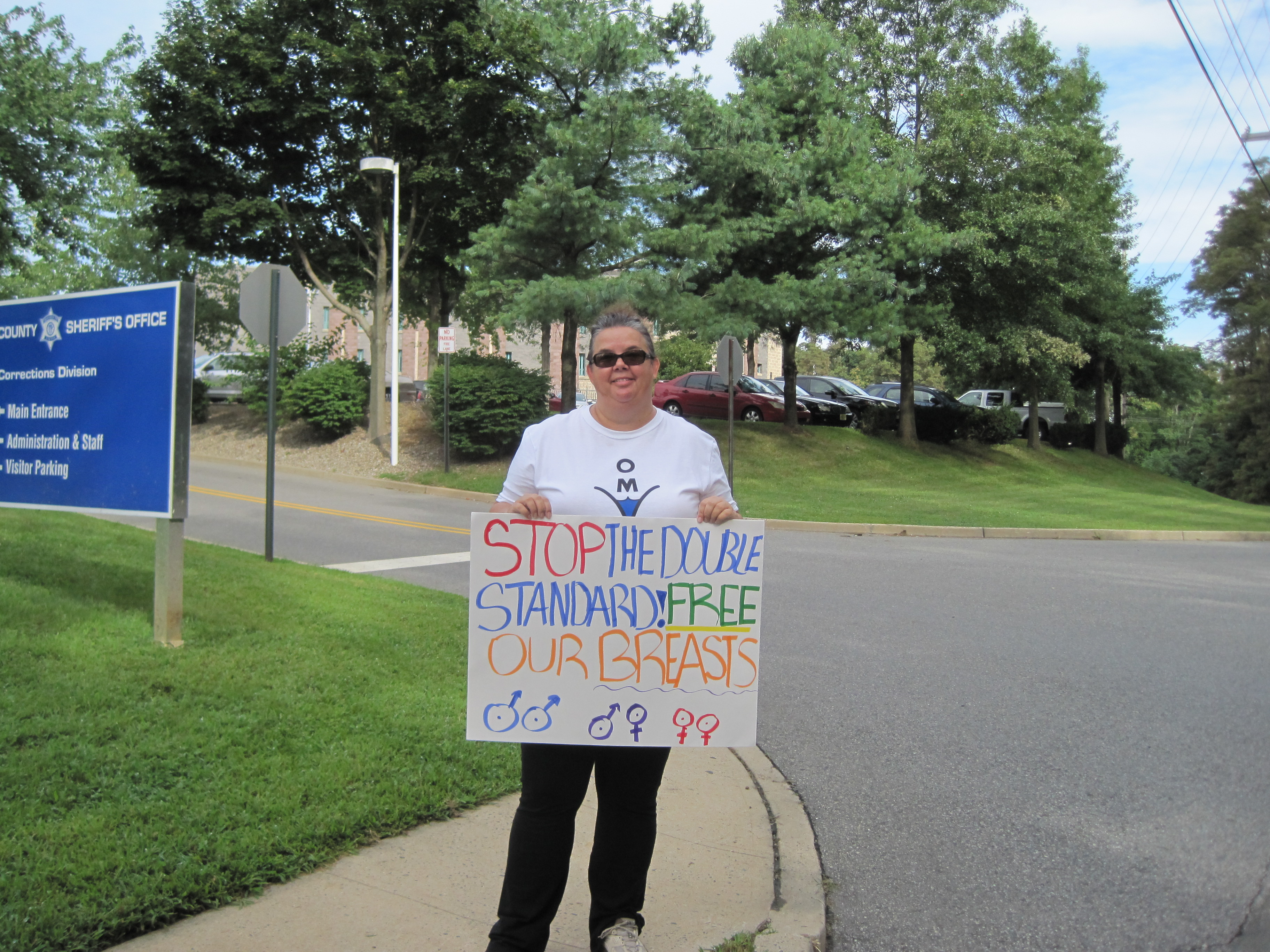 Sherwood said she wasn’t raising money to pay Feeley’s $816 fine, which would end the incarceration, as a matter of principle. Sherwood and Vliet both said they were not protesting topless and risking arrest themselves, because their protest was not about going topless.