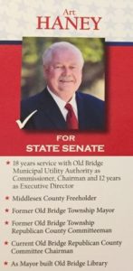 Reached on the phone and asked to explain his bio on the campaign literature, Haney refused to say if he proofed or approved the card before it was printed.  He did say, “Yes. I was a Middlesex County Freeholder. You know that. What is the issue?”