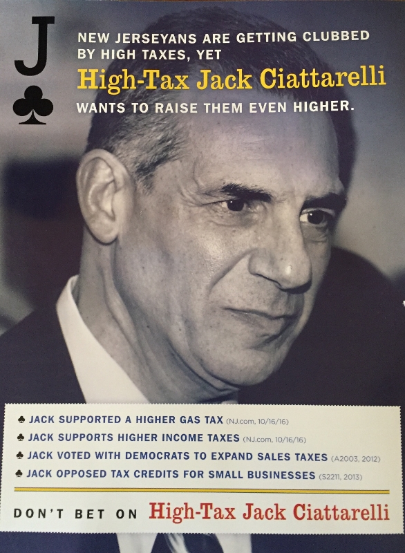 In addition to the video, a mailer arrived today clubbing “High-Tax Jack Ciattarelli” for supporting a higher gas tax, supporting a higher income tax, voting with Democrats to expand the sales tax and voting against tax credits for small businesses.