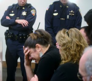 Danielle Procopio weeps in the gallery of Judge Falcetano’s Court room while the Judge is reviewing the timeline of events that resulted in the death of her 15 year old daughter Marissa. December 15, 2017