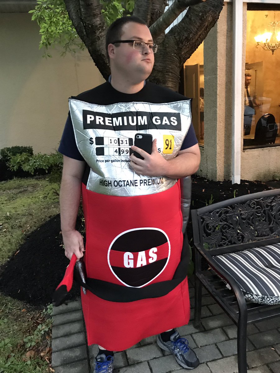Tober attended the event dressed as a gas pump. He was at the event as a “tracker” videoing Phil Murphy, the former German Ambassador who is the Democrat nominee for NJ governor.