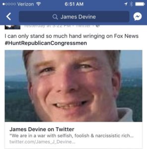 When ideology becomes extreme, especially with words and deeds (ie -Kathy Griffin, the NYC Public Theater, Madonna and others), bad results will happen. That should be obvious to all who have not been blinded by their own ideology. #HuntRepublicans is a distinct threat to the peace and safety of our community. What would you say, Matt, if an “alt-right” individual would now put out #HuntAllDemocratsDown”?