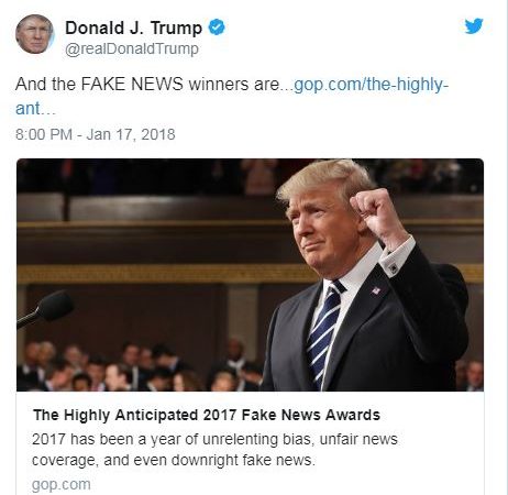 President Donald J. Trump released the Fake News Awards winners last night with a tweet that links to GOP.com