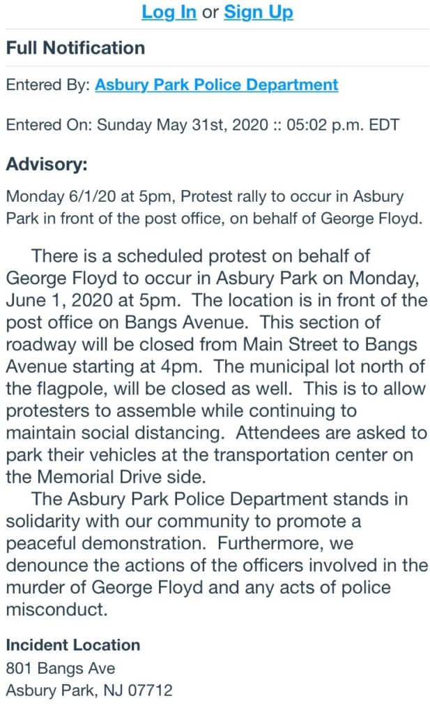 An Asbury Parker named Felicia Simmons is running a rally on Monday, at 5 pm, on the sidewalk in front of the Post office. At this writing, 3,000 people on the event page are either going (1,023) or interested in going (1,947).