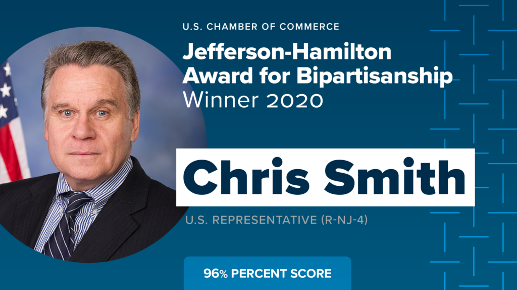 On June 9, 2020, Smith was recognized with the Jefferson-Hamilton Award for Bipartisanship by the U.S. Chamber of Commerce during a virtual celebration marking their inaugural recognition of congressional leaders.