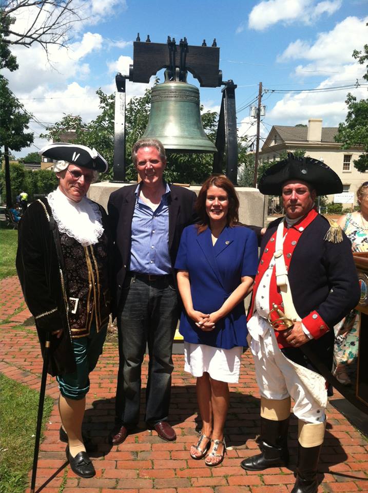 In Perth Amboy, Pallone stopped for a photograph with George Washington, Mayor Wilda Diaz and Col Manly Rash Tea Party activist Gene Hoyas.