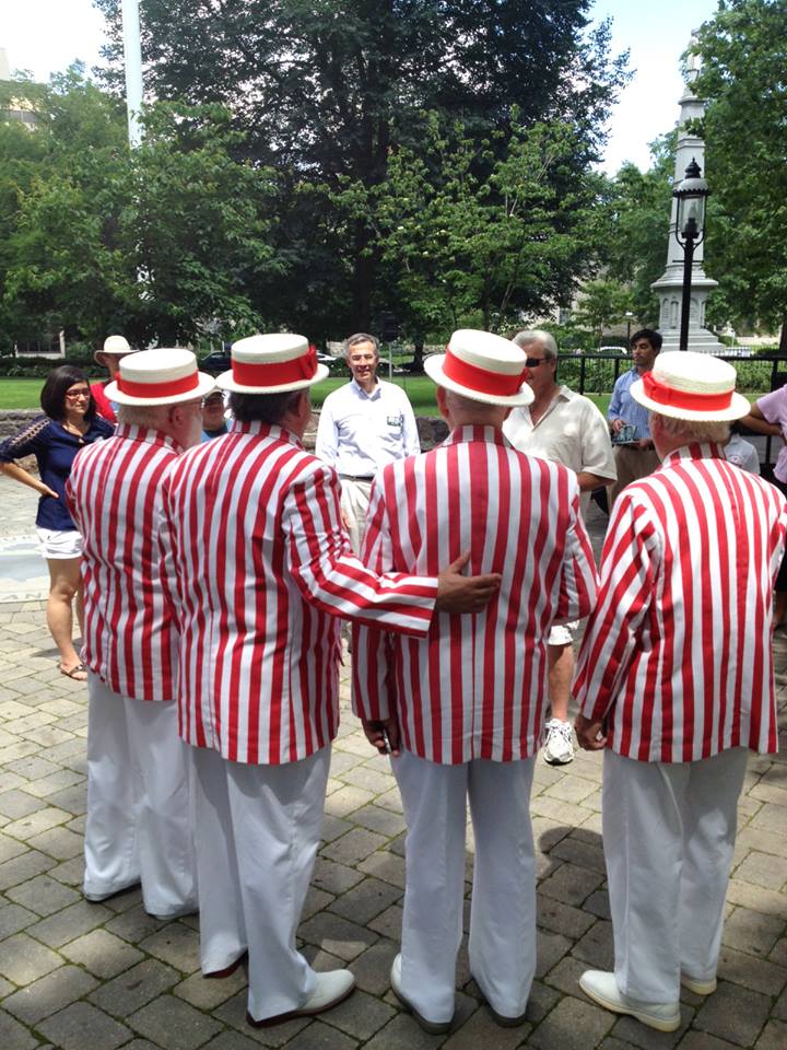 In Morristown for the Declaration of Independence reading, Holt took in some Barber Shop singing.