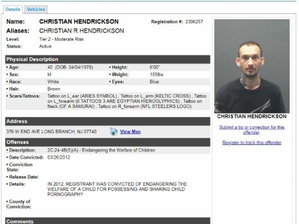An alert Long Branch resident tipped us off to the fact that Christian Hendrickson, a Tier 2 level registered sex offender who was convicted in 2012 of Endangering the Welfare of a Child for Possessing and Sharing Child Pornography went door to door last weekend with Pallone and his running mate Bill Dangler.