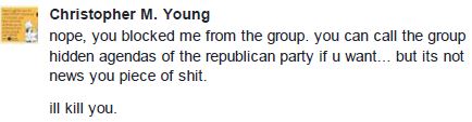 Last October, following his termination from the Sheriff’s Office, Young threatened to kill MMM publisher Art Gallagher after Gallagher deleted an inappropriate comment Young made about the Sheriff’s Office in the Monmouth County News Group on facebook.