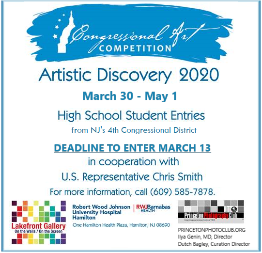 High school students who live in the Fourth Congressional District of New Jersey (parts of Mercer, Monmouth and Ocean Counties) have until March 13 to enter the 2020 Congressional Art Competition, Congressman Chris Smith announced.