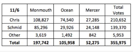 Congressman Chris Smith is leading Democrat Stephanie Schmid 59.2%-39.2% as of Friday afternoon and is expected to break the 60% threshold with the late reporting results throughout the 4th congressional district trending Republican.