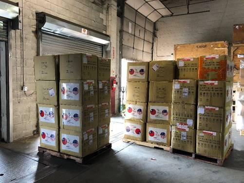 The government of Taiwan has sent 300,000 medical masks to New Jersey for use by medical personnel and first responders, 200,000 of which arrived at a Morris County warehouse today, Congressman Chris Smith announced.