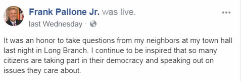 I was surprised to learn this morning that Congressman Frank Pallone held a Town Hall in Long Branch last week.