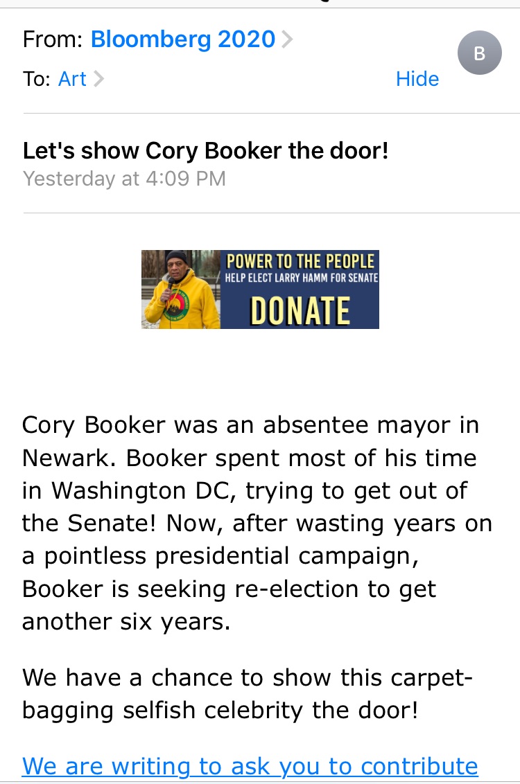 Could Mike Bloomberg possibly be supporting Cory Booker’s opponent in the Democrat primary for U.S. Senate?