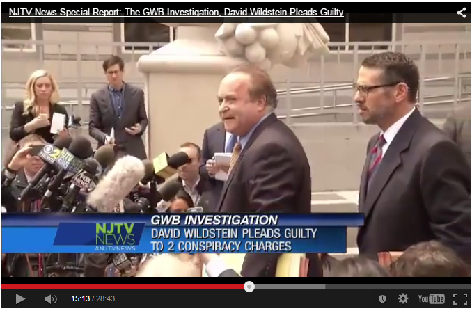 NEWARK — Former Port Authority executive David Wildstein has pleaded guilty for his role in the closure of local access lanes to the George Washington Bridge. He admitted conspiring with Bill Baroni and Bridget Anne Kelly to “punish” Fort Lee mayor Mark Sokolich for not endorsing Gov. Chris Christie in his re-election bid. Wildstein will be… Read the rest of this entry »
