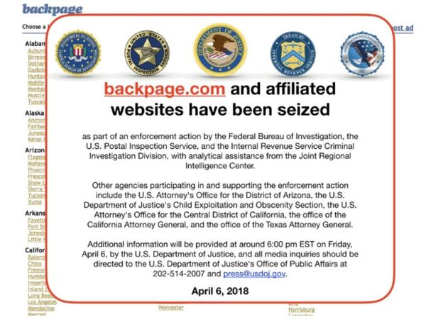 Posted: April 7th, 2018 | Author: admin | Filed under: Human Trafficking, News | Tags: Backpage, Backpage.com, Child Sex Trafficking, Commercial Sex, FBI, Human Traffiking, IRS, news, U.S. Justice Department, US Postal Inspection Service | Comments Off on Feds take down Backpage.com, an online haven for sex ads