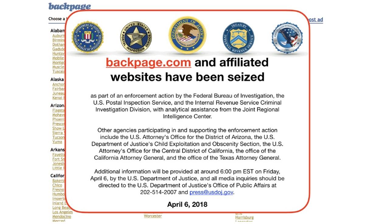 Posted: April 7th, 2018 | Author: admin | Filed under: Human Trafficking, News | Tags: Backpage, Backpage.com, Child Sex Trafficking, Commercial Sex, FBI, Human Traffiking, IRS, news, U.S. Justice Department, US Postal Inspection Service | Comments Off on Feds take down Backpage.com, an online haven for sex ads