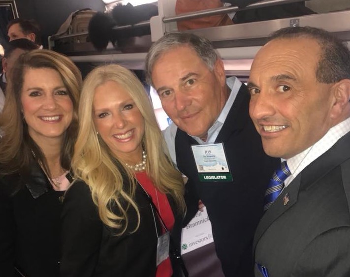 Assemblywoman Serena DiMaso, Clerk Christine Giordano Hanlon, “top contender for governor” Jon Bramnick and Freeholder Director Tom Arnone on the Walk to Washington train last winter.