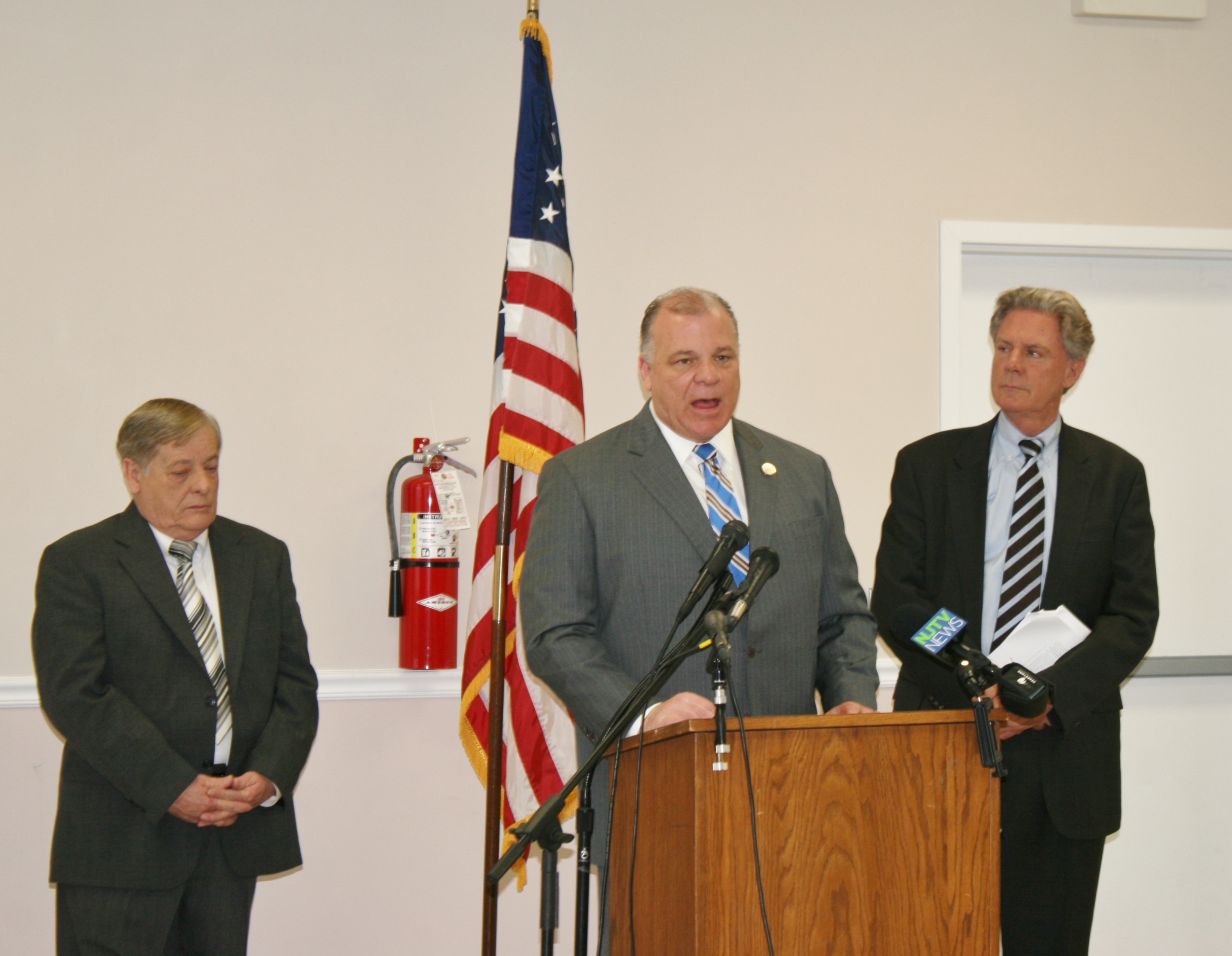 Keansburg Deputy Mayor Jimmy Cocuzza, Senate President Steve Sweeney and Congressman Frank Pallone at Sweeney’s Town Hall Meeting in Keansburg, March 20, 2014