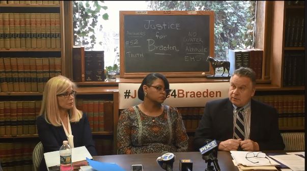 Joanne Atkins-Ingram, center, her attorney, Jill E. Green, and Congressman Chris Smith, held a press conference on April 7, to demand an independent investigation into the death Braeden Bradforth, Atkins-Ingram’s son.