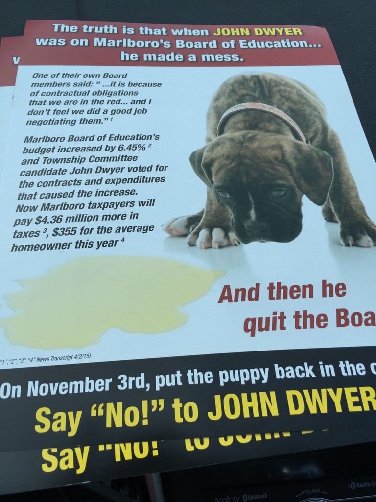 They have further politicized the Schools with two mailers to Marlboro voters in the last week or so, in which they lie about former School Board Member John Dwyer’s role in the property tax increase associated with the School Board Budget. Dwyer, and Sui Allex, are the Republican candidates running against Marder and Scalea.