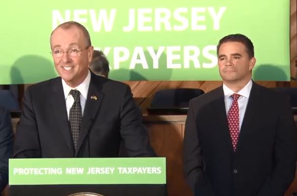 Marlboro, NJ-With Belmar Mayor Matt Doherty looking like Chris Christie standing behind Donald Trump on Super Tuesday — and four other Democrat mayors standing behind him, Governor Phil Murphy today declared he had bi-partisan support for his plan to have the state’s municipalities set up charities to accept donations in lieu of property taxes. Murphy said that the recent income tax reform passed by Congress and signed into law by President Trump is a tax increase on New Jersey’s middle class. The scheme he is proposing would, if allowed by the IRS, reverse the impact of the tax reform law’s $10,000 cap on the state and local tax (SALT) deduction.