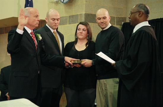 Assignment Judge Lawrence M. Lawson administering the Oath of Office to Freeholder Gary Rich, January 2012.