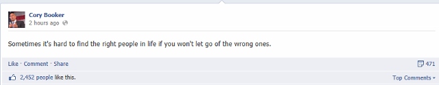 Booker’s daily inspirational social media message this morning indicates that he might not be so forgiving.