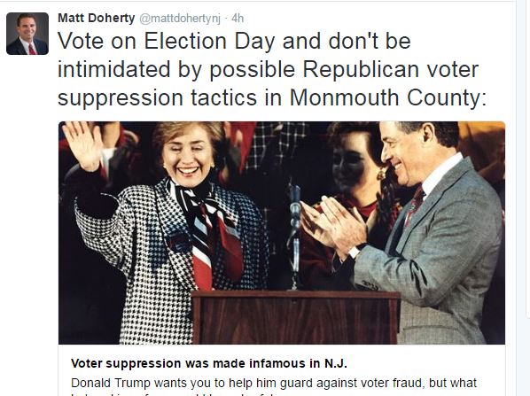 Doherty linked his comment to an Asbury Park Press article about alleged voter suppression during the 1981 New Jersey gubernatorial election when Tom Kean, Sr defeated then Congressman Jim Floro by 1797 votes and the Democratic National Committee’s allegation that Donald Trump’s campaign in attempting to suppress minority turnout in this year’s election.