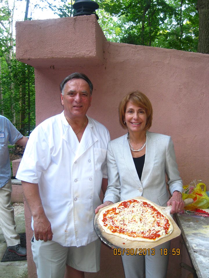 Former Democratic Senate, Assembly and Freeholder candidate Lenny Inzerillo and Democratic Gubernatorial candidate posing with pizza this evening at a Middletown Democratic fundraiser. facebook photo