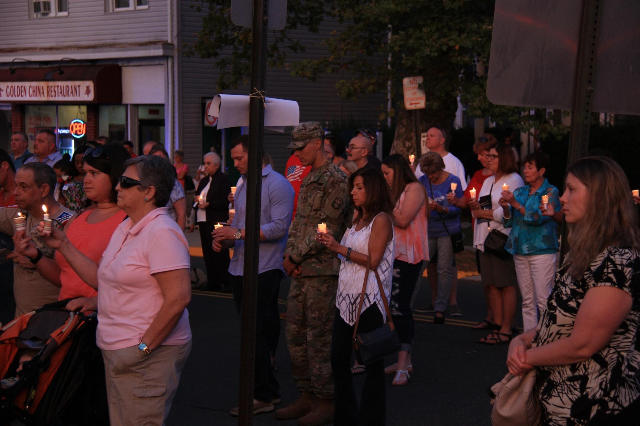 More than 500 participants and spectators filled the chairs and spilled out into Main Street, which the Mayor and Council had closed to vehicular traffic for the event to hear and see people of all ages participate in the program honoring the 147 residents of Monmouth County who lost their lives in the attacks 15 years ago.