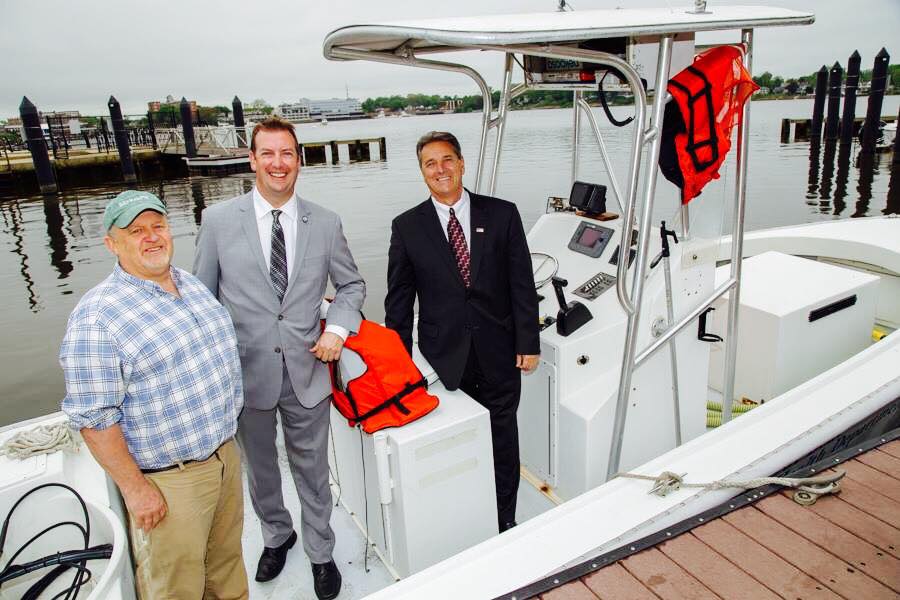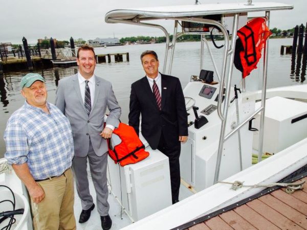 Freeholder Patrick Impreveduto joined Christopher P. Merkel, Public Health Officer/Coordinator and NY/NJ Baykeeper Greg Remaud to kickoff the Monmouth County boating season aboard The Royal Flush, the County Health Department owned and maintained pump boat that is operated by the Baykeeper.