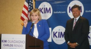 NJ GOP Gubernatorial candidate Kim Guadagno stood before a full ballroom in Toms River yesterday, with her running mate, Woodcliff Lake Mayor Carlos Rendo, Republican National Committee Co-Chairman Bob Paduchik and Ocean County GOP Chairman George Gilmore standing beside her and declared, “We will win this election!”